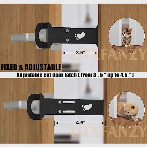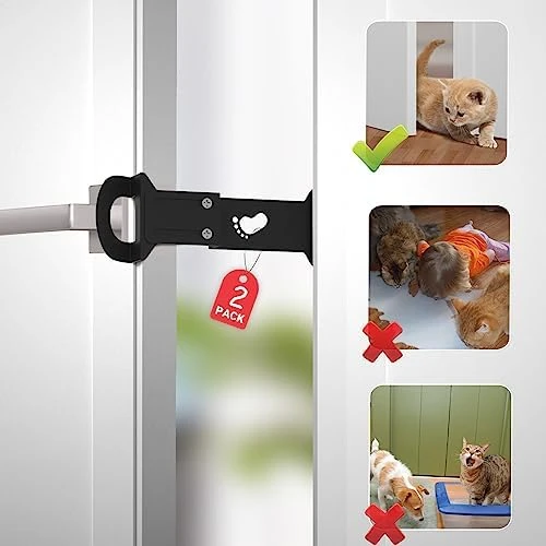- 🐱【EASY TO INSTALL AND USE】:This door latch can be mounted on the door’s strike plate or high up out of the reach of children. No measuring or cutting required!(The door is always secured in a specific position, which helps air circulation and prevents painful pinch injuries❗❗❗)