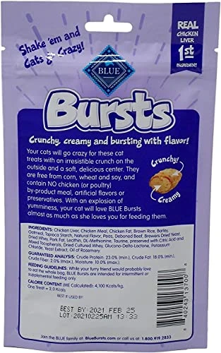 - BLUE Bursts treats for cats are packed with the healthy, wholesome ingredients you’ll feel good about giving