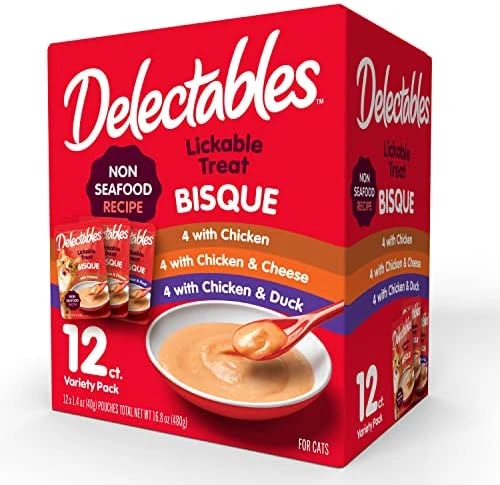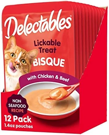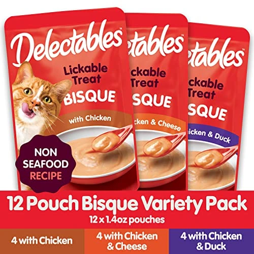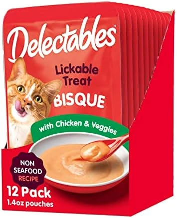 - Delectables Non-Seafood Lickable Treats are available in a Stew & Bisque texture with a variety of chicken flavors.