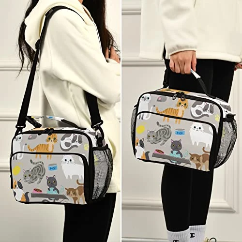 - Portable: The adjustable shoulder strap facilitate you to take this lunch bag out for office or gym. Double zippers design for easy access. You can store small things in the two side mesh and front pocket