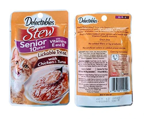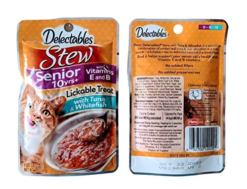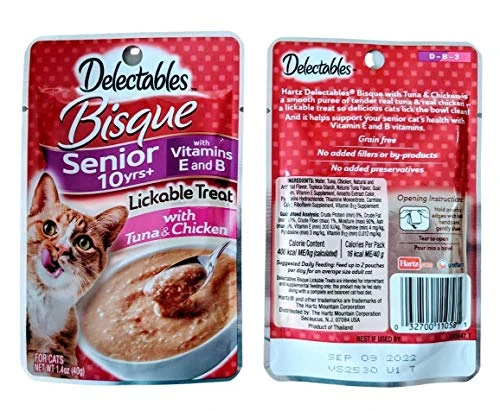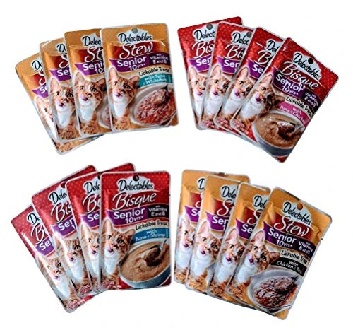 GENERIC Delectables Senior 10+ Lickable Treats Variety Bundle Pack Of 16: (4) Bisque Tuna & Shrimp, (4) Bisque Tuna & Chicken, (4) Stew Chicken & Tuna, (4) Stew Tuna & Whitefish. 1.4 Oz Each.