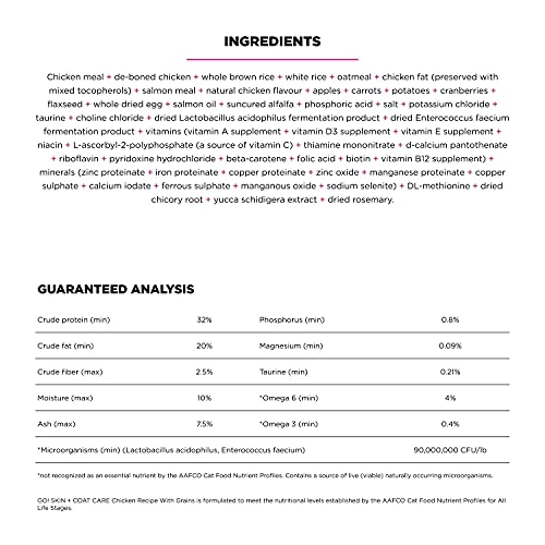- WITH NATURAL INGREDIENTS: Premium cat food made with cage-free chicken, antioxidant-rich fruits + veggies to support immune system health, and probiotics + prebiotic fiber to support healthy digestion.