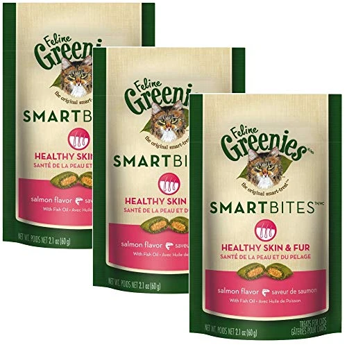 - Flavor: FELINE GREENIES™ SMARTBITES™ Healthy Skin & Fur Treats Salmon Flavor