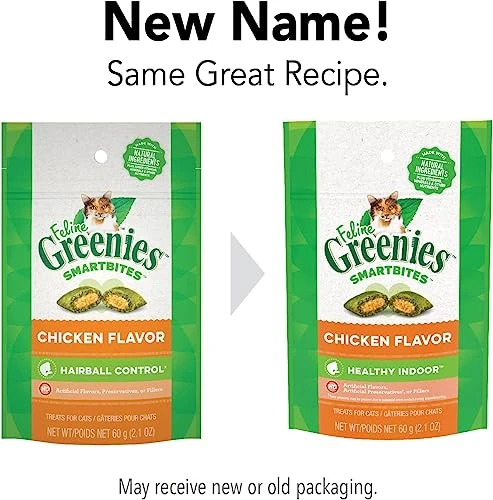 - Flavor: FELINE GREENIES™ SMARTBITES™ Hairball Control Treats Chicken Flavor