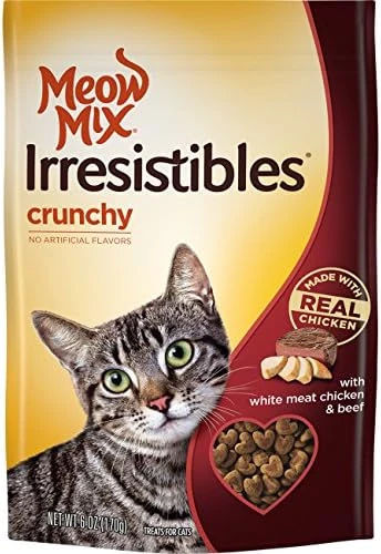 - Meow Mix Irresistible Are Available In Six Tasty Flavors And Two TexturesβCrunchy Or Soft!