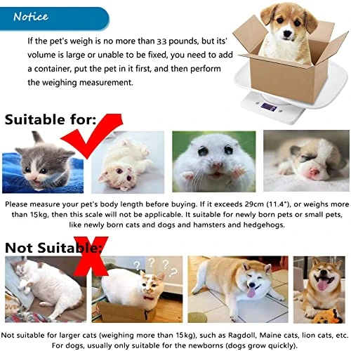 - GOOD DESIGN: The portable design of pet electronic scale makes it possible to use it for different things, the tray made of high-grade ABS eco-friendly material is safe and comfortable for newborn pets or kittens.