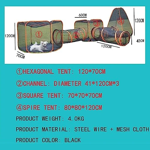 - 【WHAT YOU GET】 1 Hexagon Cat Tent, 1 Square Cat Tent, 1 Cone Cat Tent, 3 Pet Tunnels, 1 Portable Carry Bag, 20 Fixing Pegs and Friendly Customer Service.