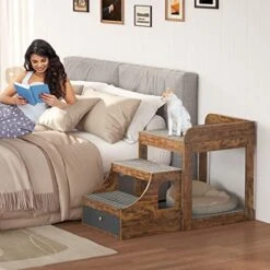 Cyclysio Pet Window Perch With Stairs, Super Large Pet Bunk Bed For Cats, Multi-Level Pet Seat Platform With Mats, Pet Bed Couch With Drawers For Bedside, Home, Indoor Use, Large Size, Rustic