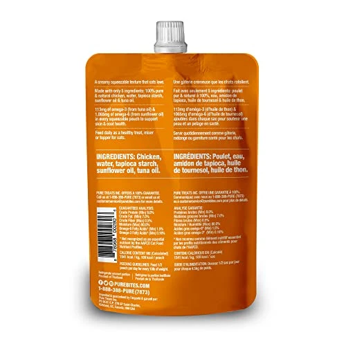 - Made fresh & pure in a fun and interactive squeezable pouch. Ideal for cats with health issues, have allergies, or are on a restricted diet. Feed as a healthy and functional treat, mixer, or topper for your cat