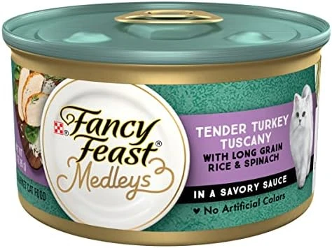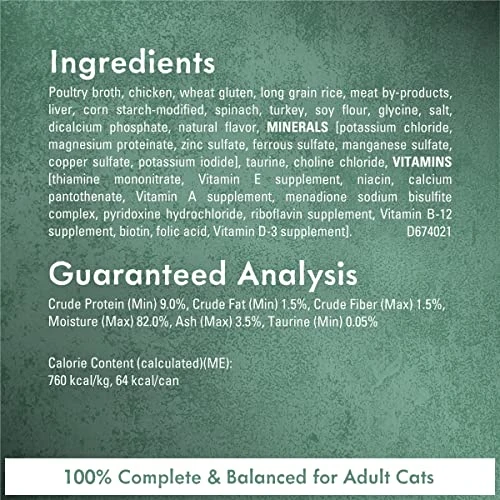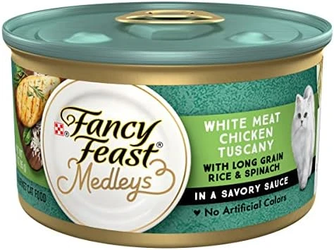 - Tender white meat chicken offers a taste cats crave. Accents of garden greens and long grain rice add an artful touch