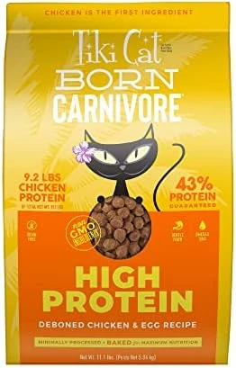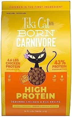 - NON-GMO INGREDIENTS – Your feline friend will thrive with the high-protein, high-fat and meat-based ingredients in Tiki Cat Born Carnivore