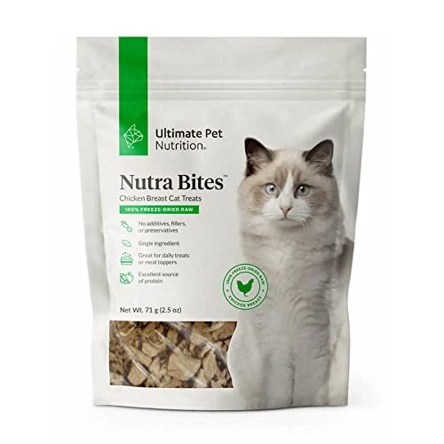 ULTIMATE PET NUTRITION Nutra Bites For Cats, Freeze Dried Raw Treats, Single Ingredient, Grain Free, Chicken Breast, 2.5 Ounce