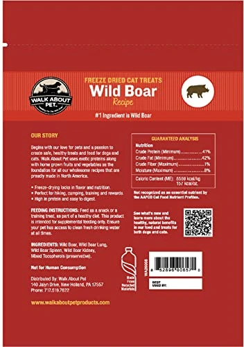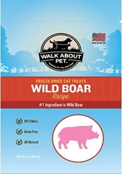 - Wild Boar is the only ingredient; strong meaty taste and smell, low in saturated fat and cholesterol, more protein per pound than beef, lamb or chicken