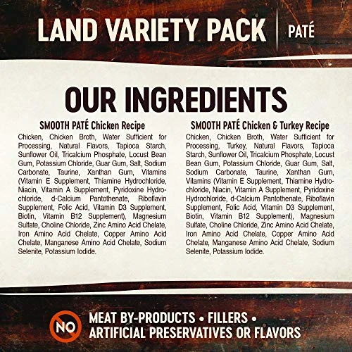 - POULTRY VARIETY PACK: Includes two wet cat food flavors with real protein as the first ingredient: Chicken Pate and Turkey Pate. Pate is completely smooth for an irresistible taste your cat will love.