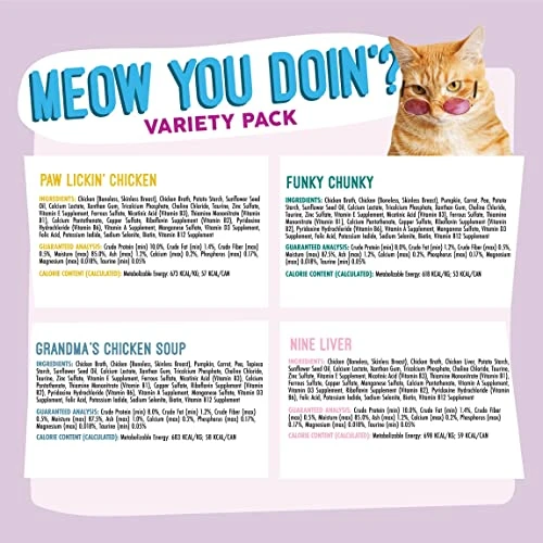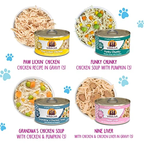 - Variety pack includes 3 each of Paw Lickinā Chicken, Funky Chunky, Grandmaās Chicken Soup, Nine Liver